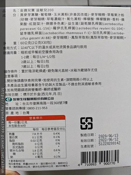金適兒寶益敏兒200為友華生技公司產品,友華生技為國內全方位、跨國性藥廠,公司所發售的商品讓人放心