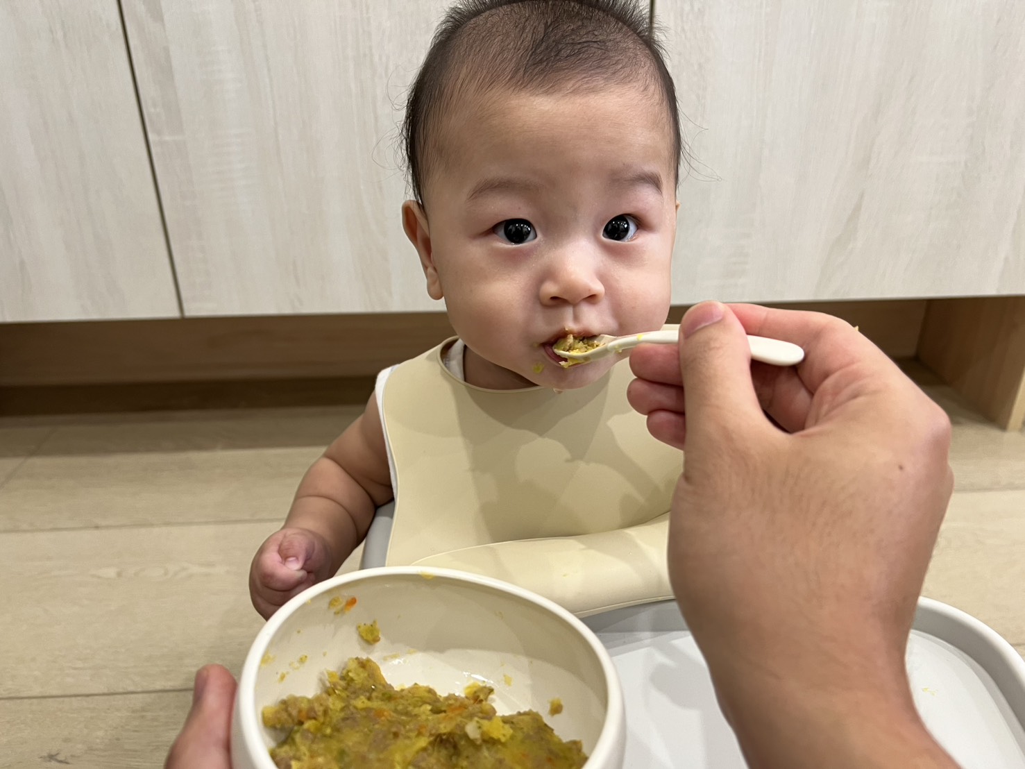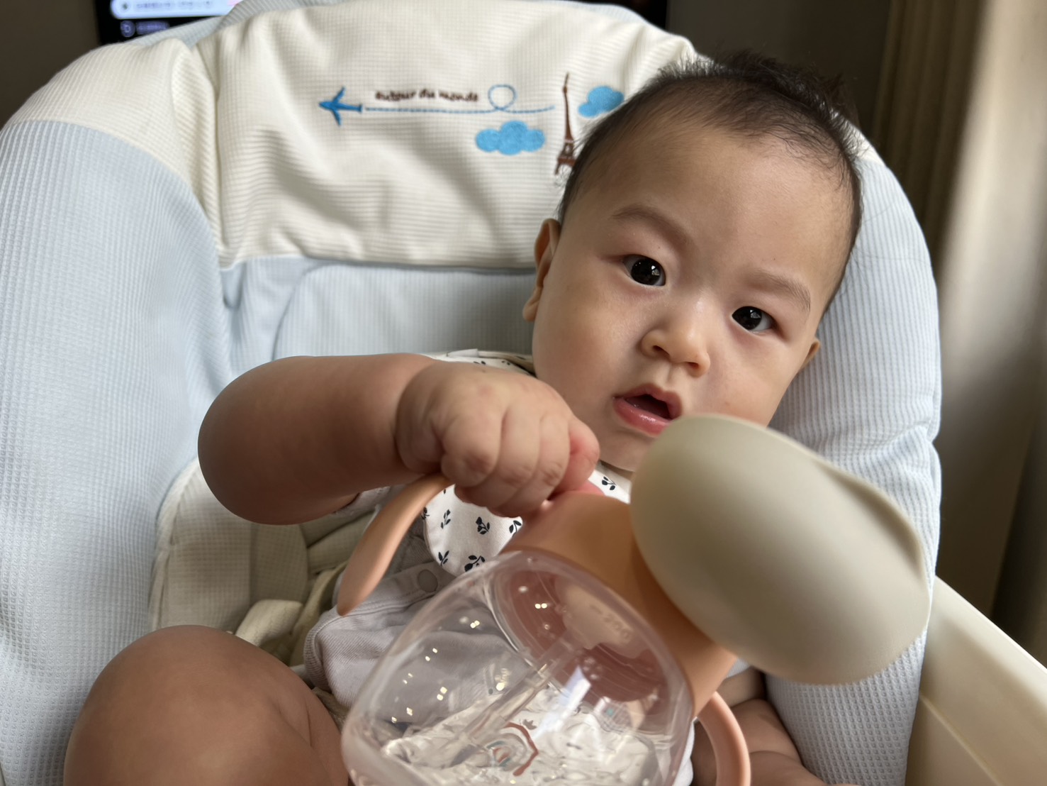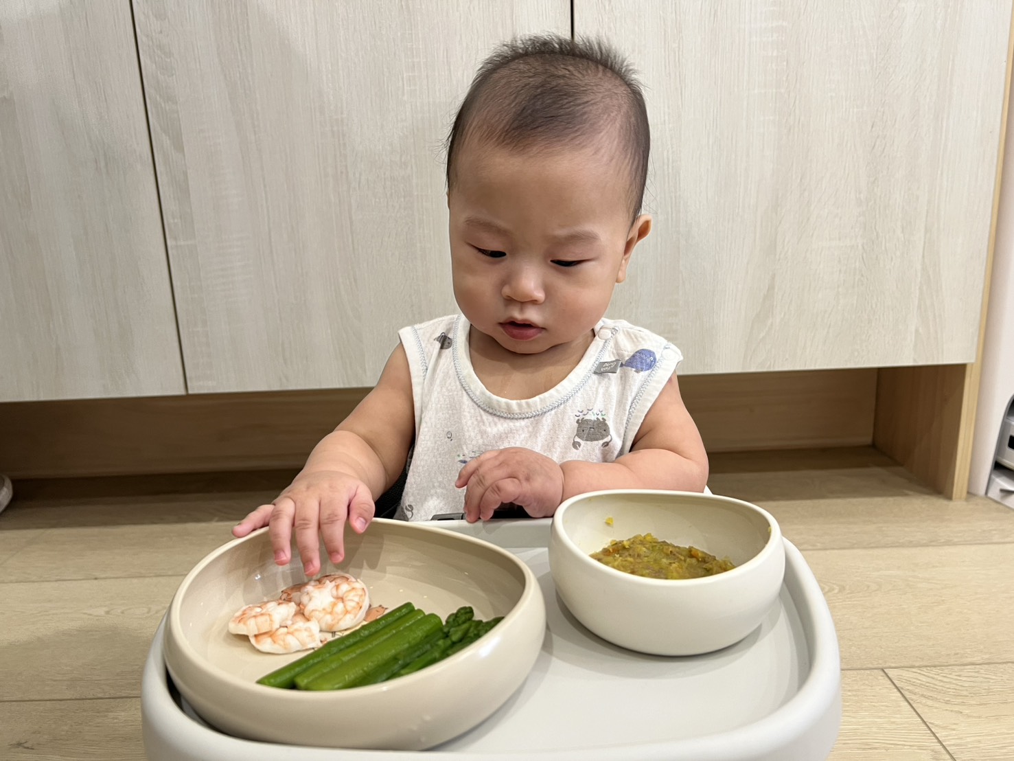 寶寶在學習自主進食跟飲水的過程中,從一開始的亂抓亂潑,到現在已經能自己慢慢把食物送進嘴巴,成長的每個瞬間都好珍貴。
