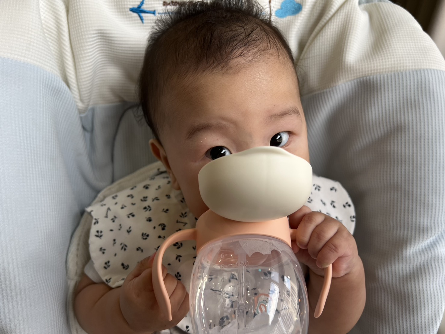 水壺本身有握把,小手很好抓握,寶寶自己拿著也不會一直掉下來,用起來很順利。