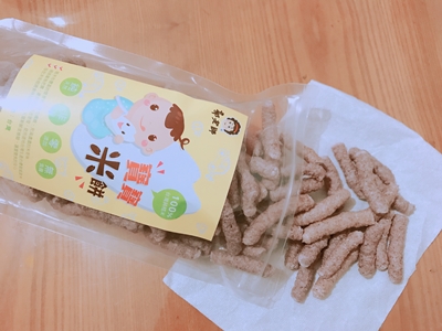 小孩在吃的時候,我會拿著一起吃,因為味道實在太香很吸引人,吃起來淡淡的米香味,味道極為單純,很好入口融化掉,給小孩吃可以很安心
