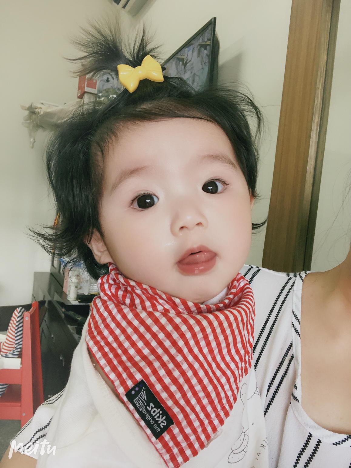 大家好,我叫彤彤,六個月大,我的頭髮很多很黑還有自然捲,選我選我~