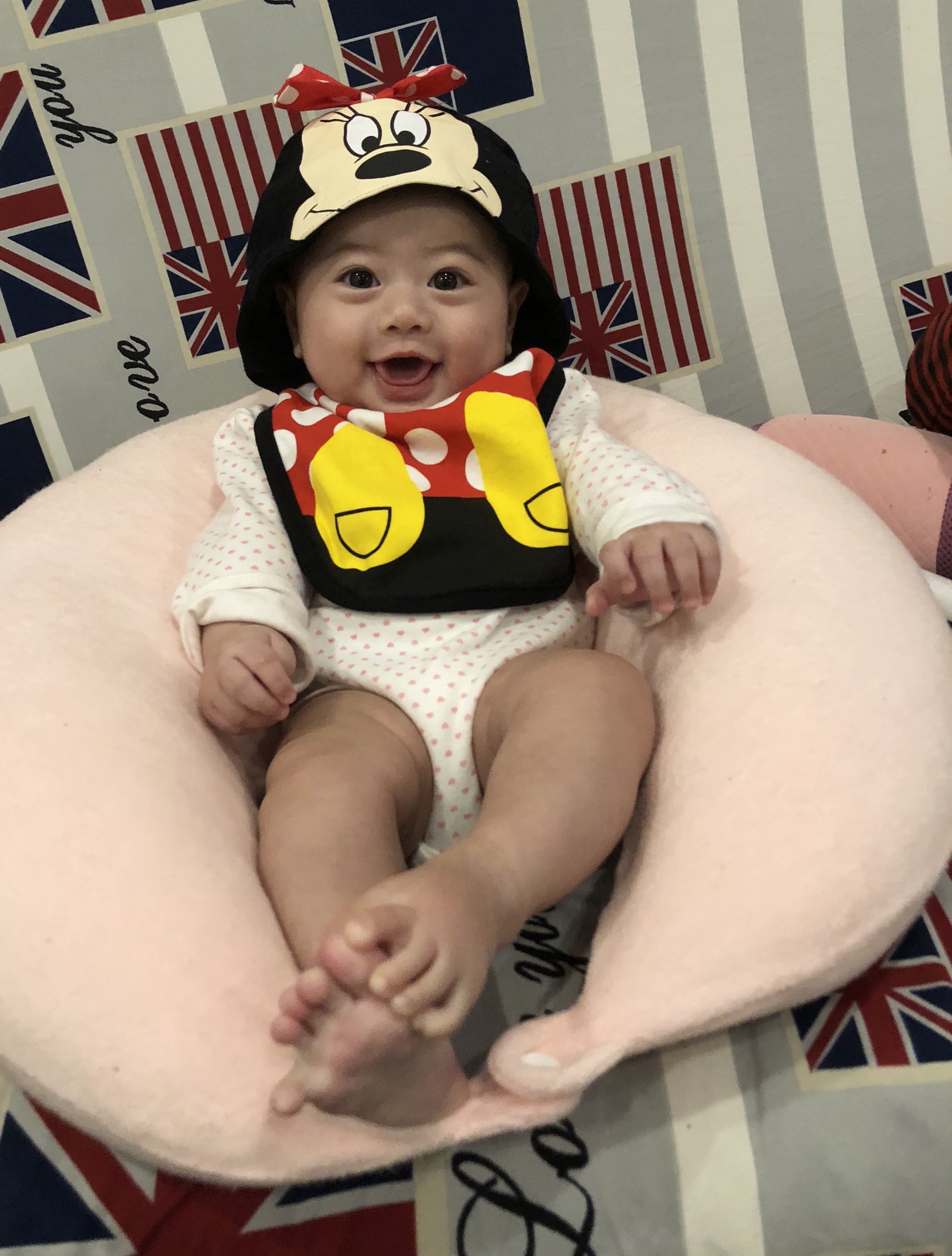 妞妞全副武裝帶上米妞造型圍兜帽