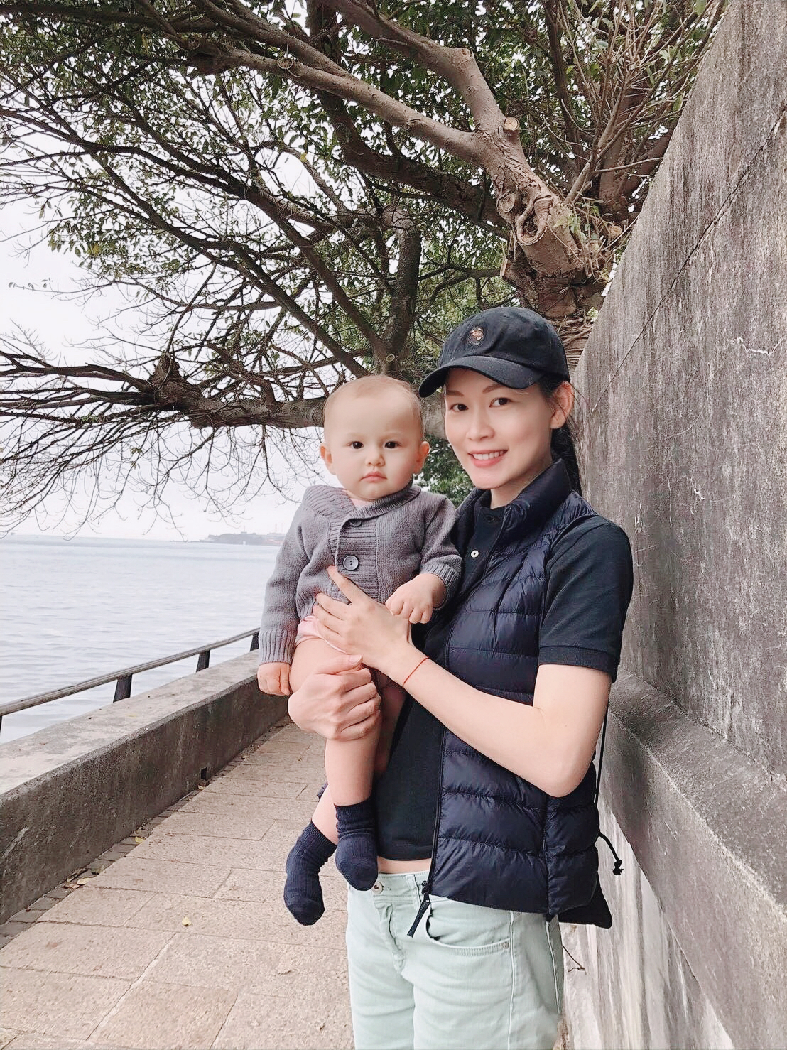 兔兔最喜歡黏著媽媽,媽媽抱著坐挺挺看鏡頭, 淡水一日遊的美好回憶!