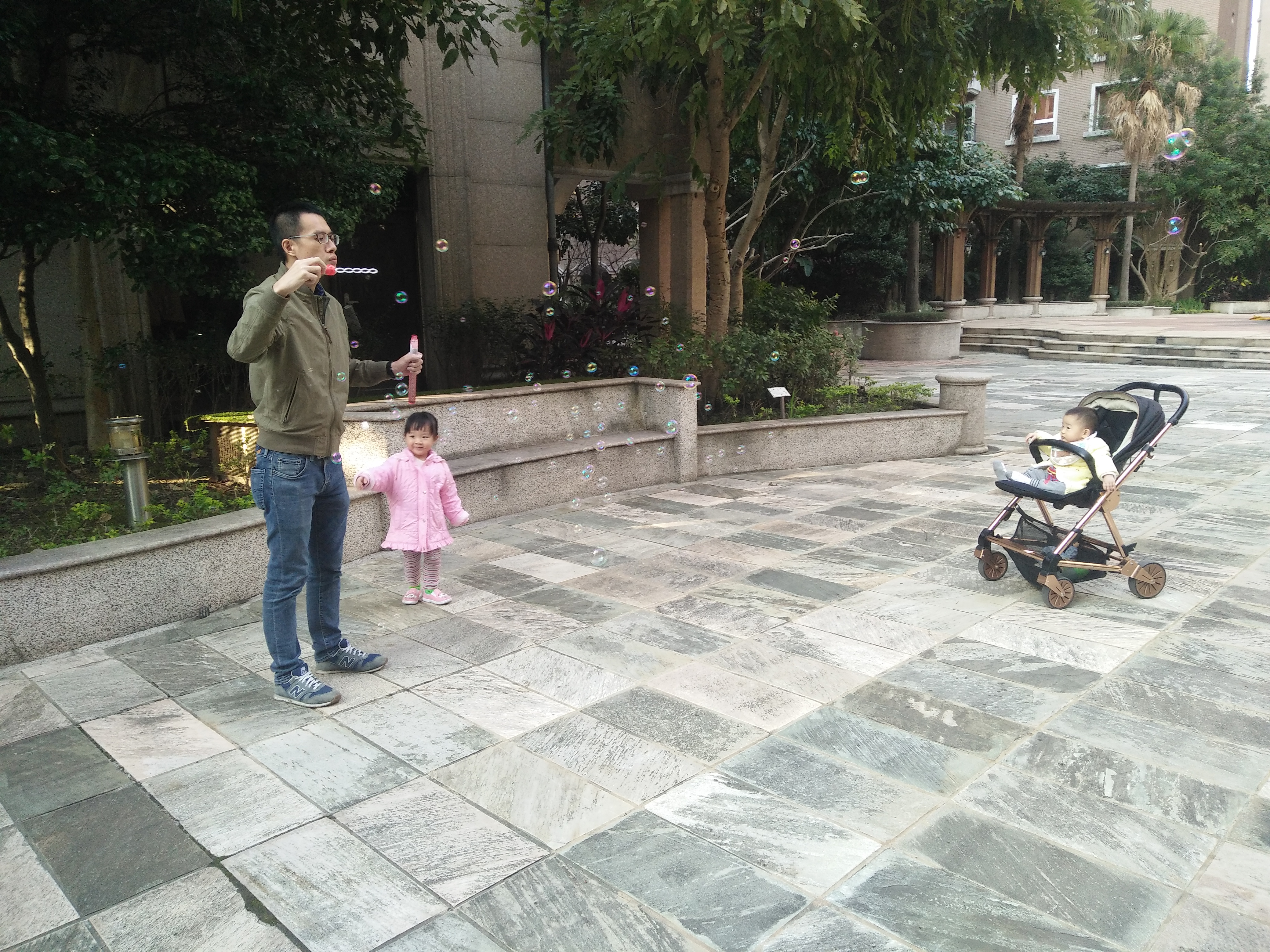 爸爸很認真的吹泡泡