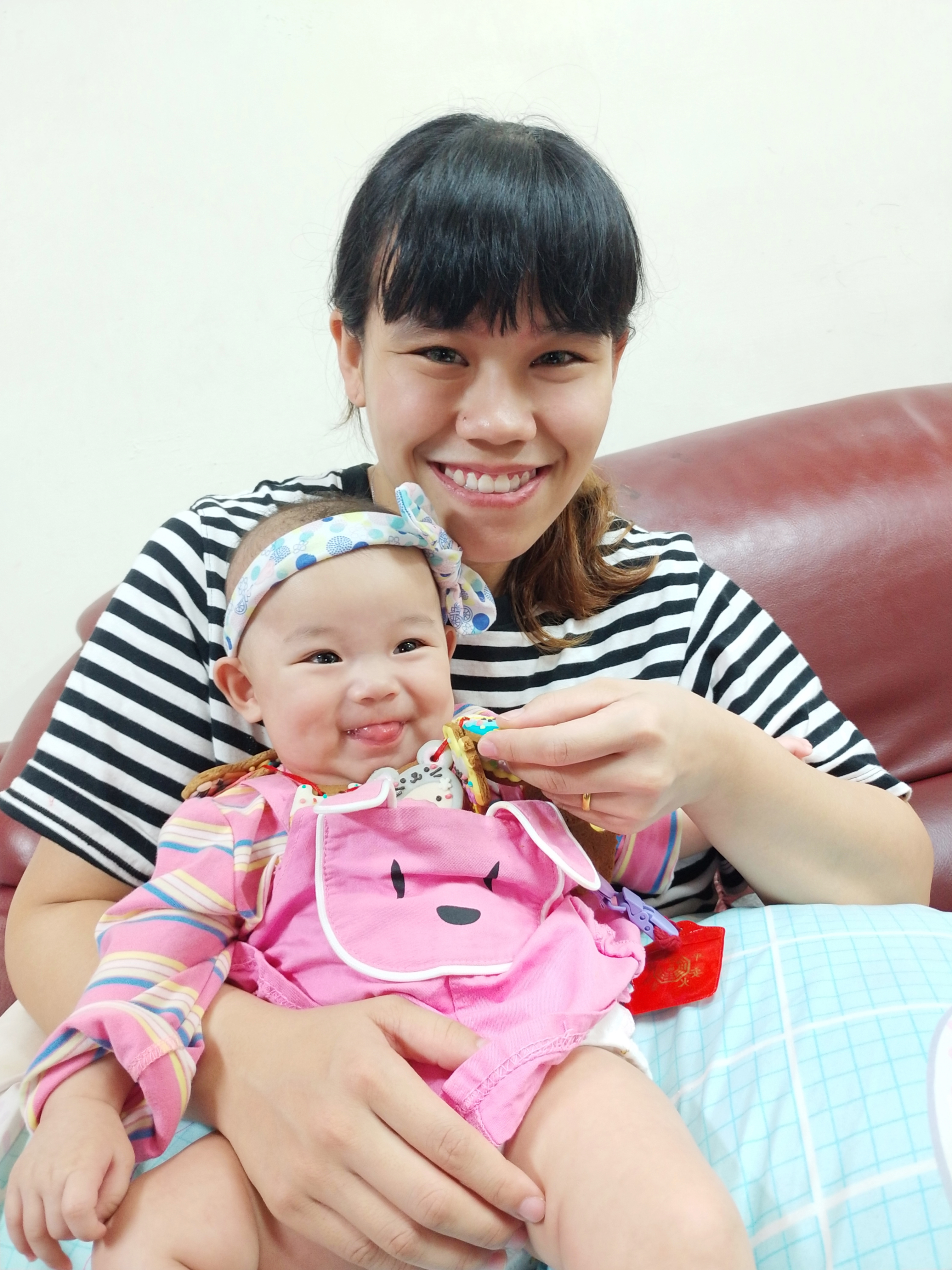 總是愛笑嘻嘻的妞妞 收涎日心情特好 笑得特別開心