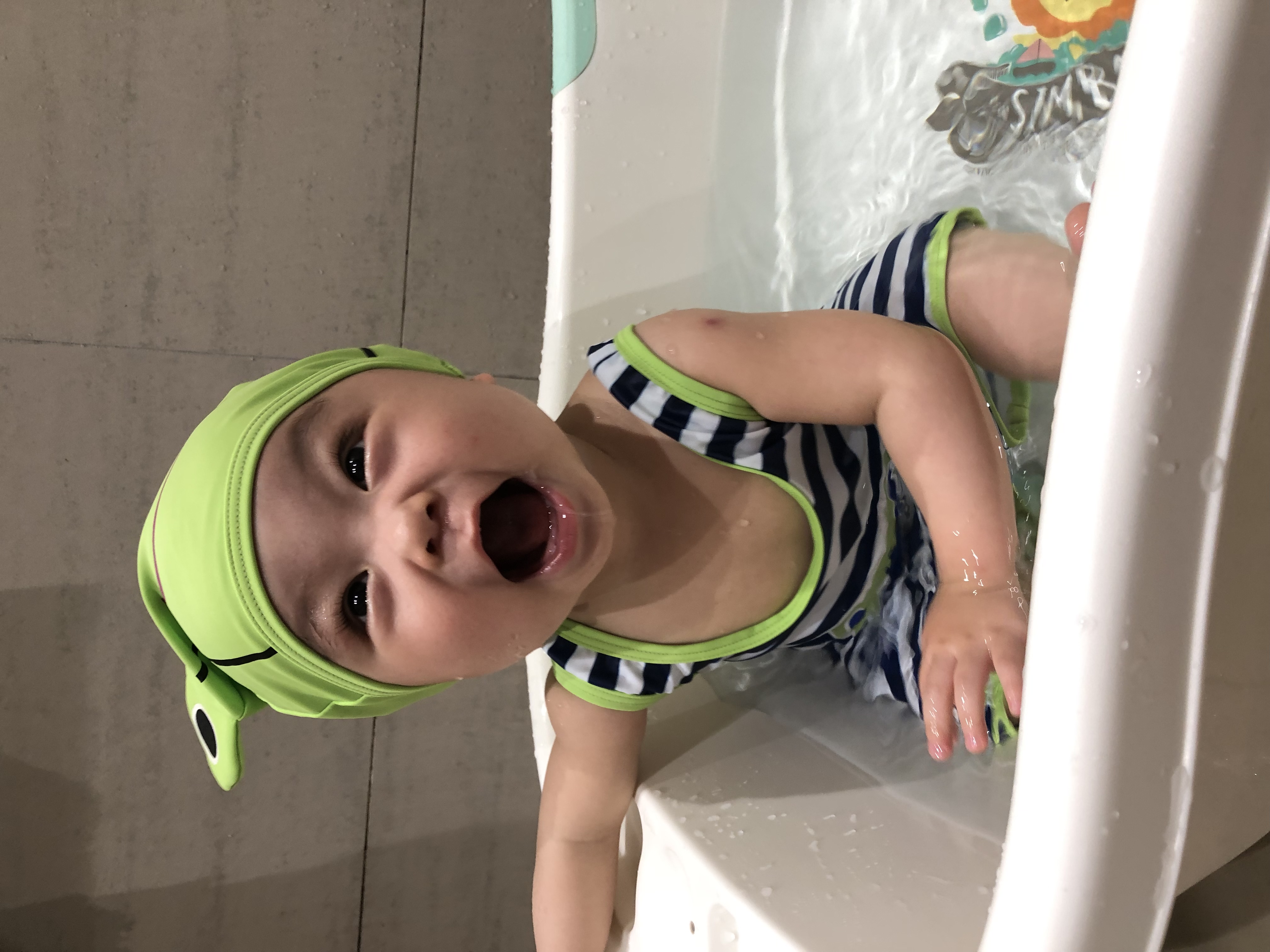 終於可以自己坐在澡盆裏面??